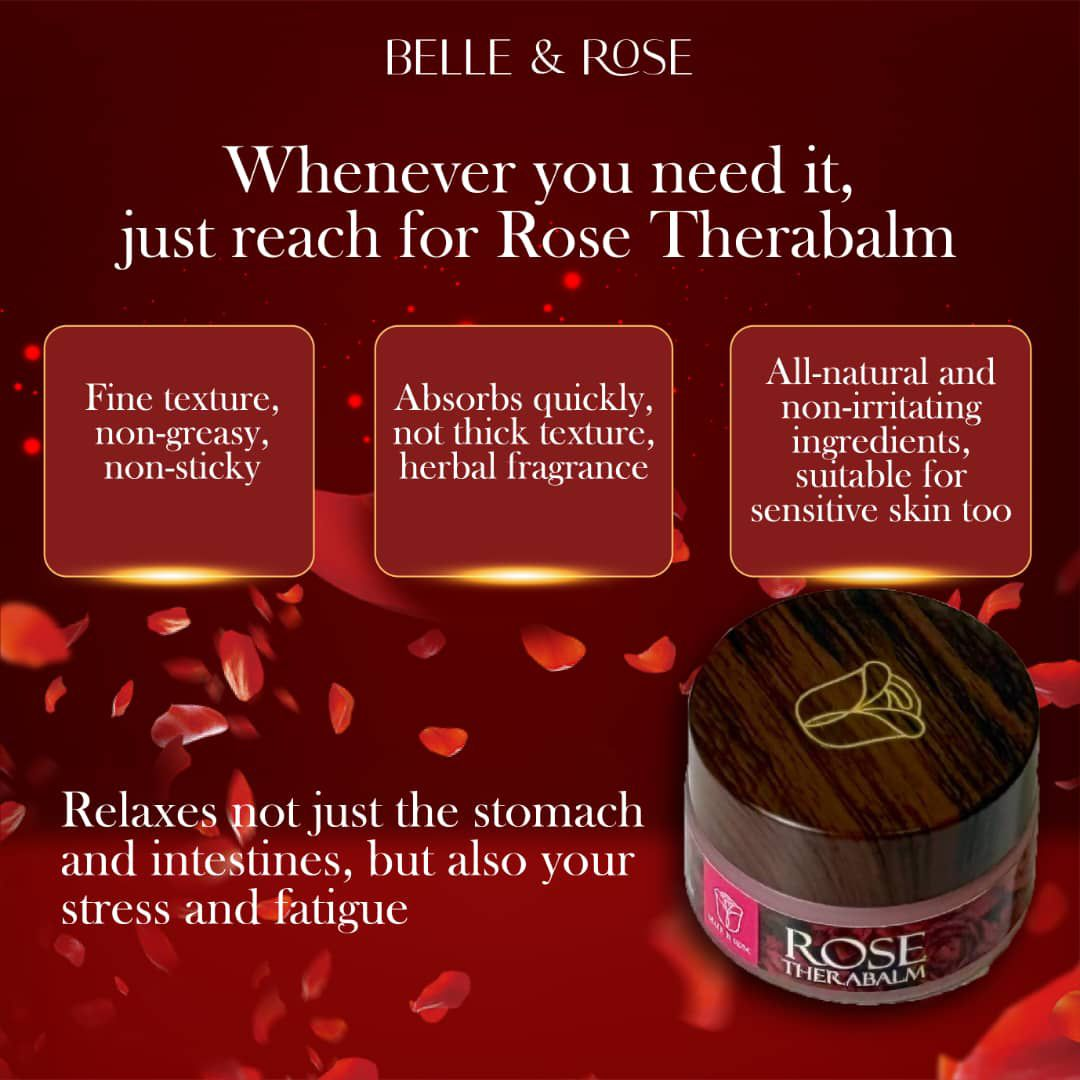 Belle Rose Rose Therabalm is a carefully handcrafted natural aromatherapy balm designed to support overall comfort, relaxation, and body balance. Inspired by traditional herbal therapy principles, this balm is created in small batches to preserve the freshness of plant extracts and its soothing rose fragrance.