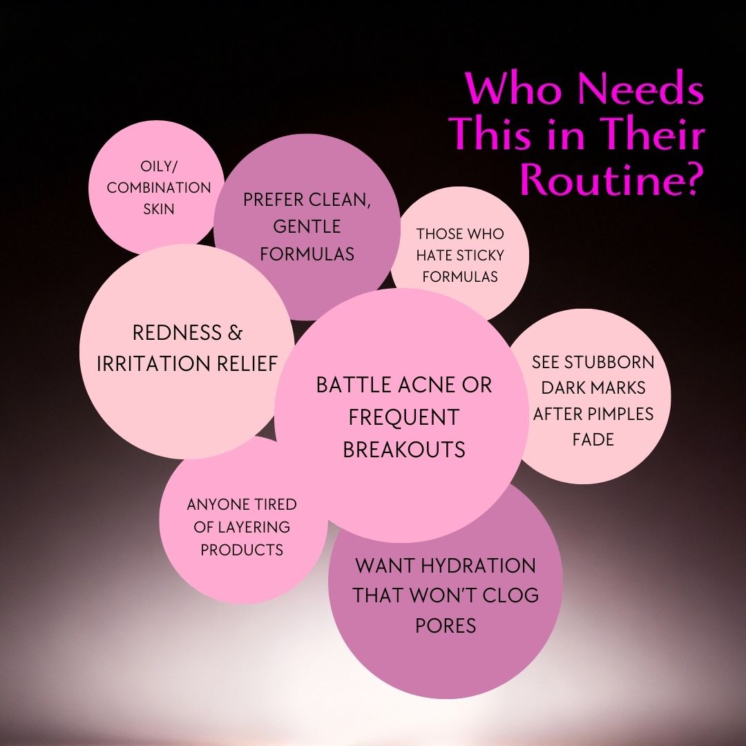 Blemish Relief Serum is an ideal choice for individuals seeking a simple and lightweight serum that helps clarify skin appearance, soothe skin feel, and support an even looking complexion.