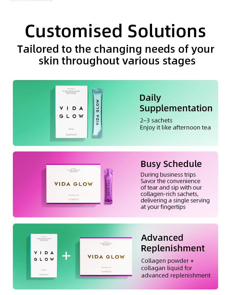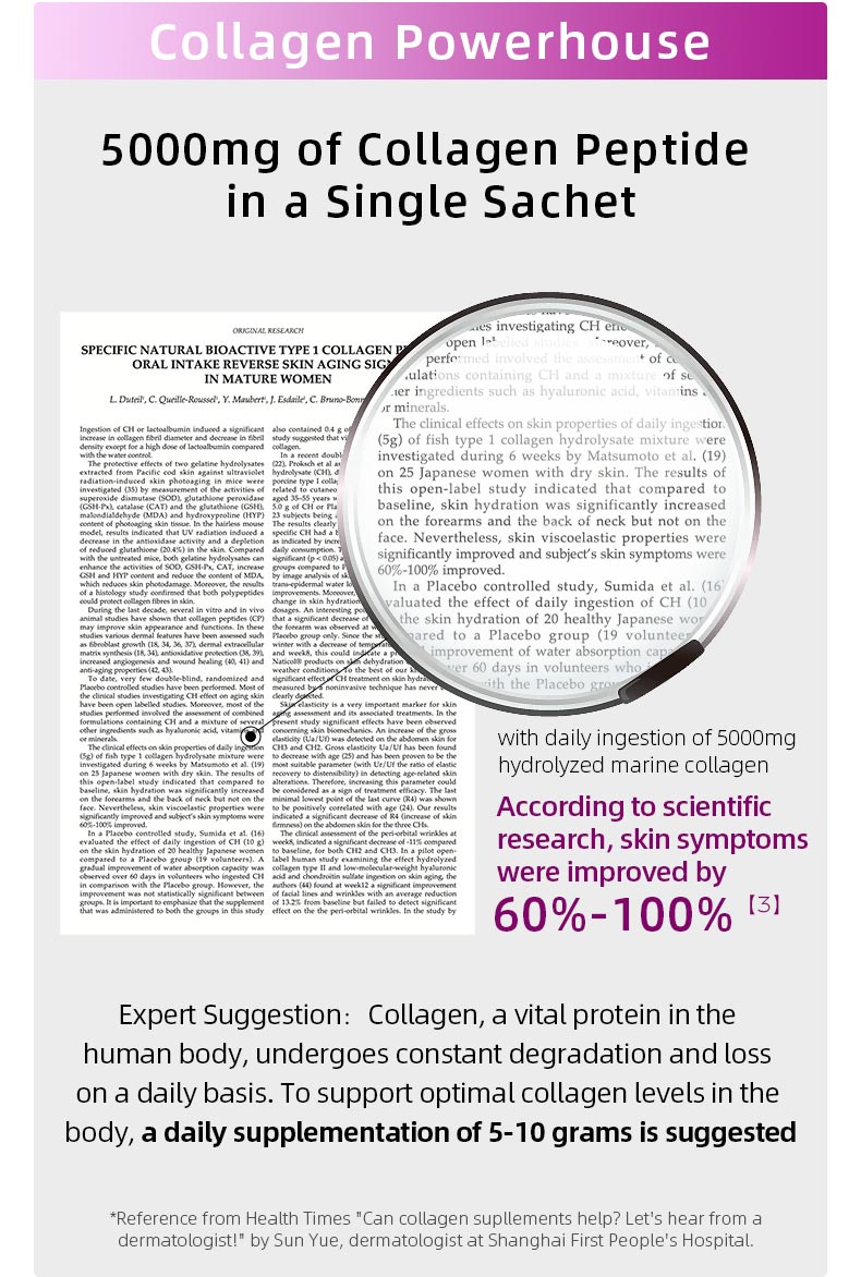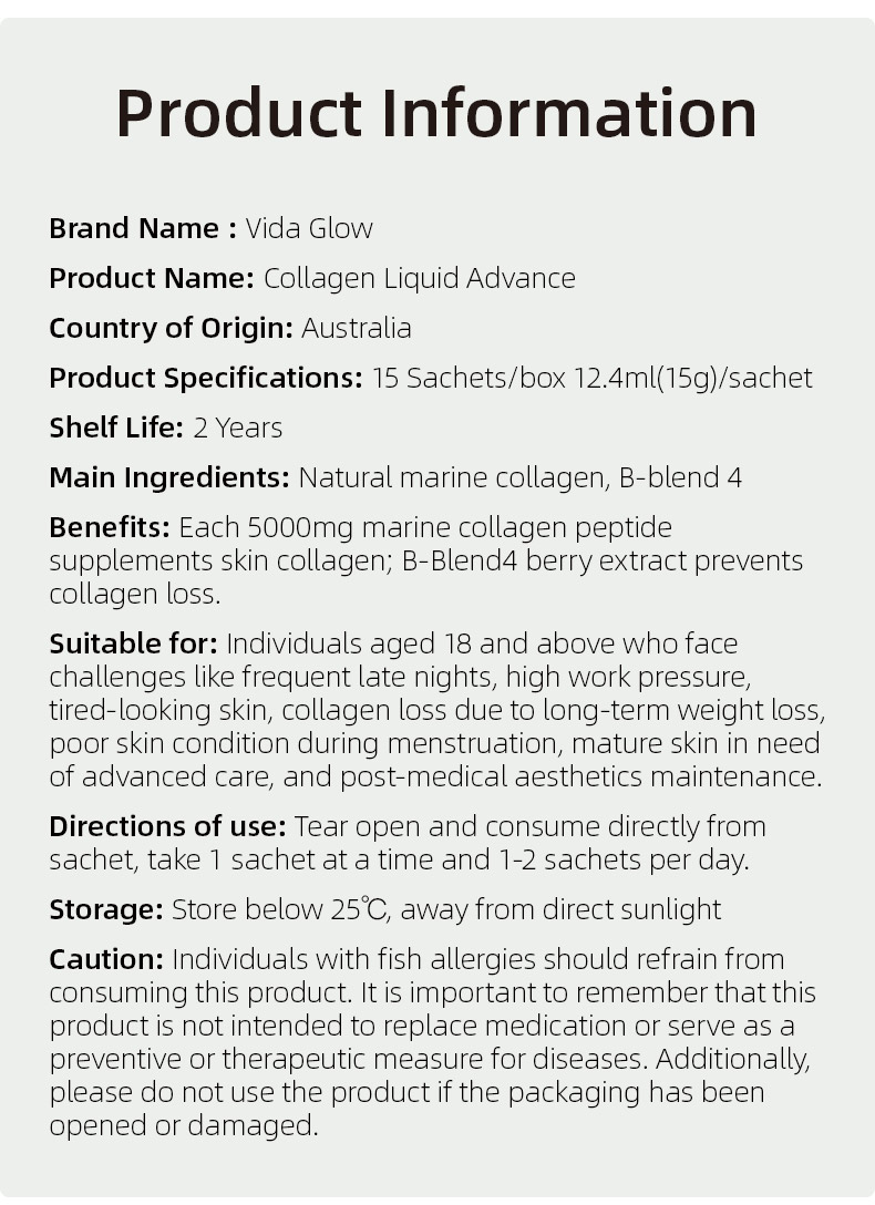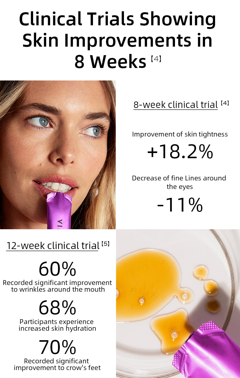 • Easy to consume liquid collagen sachets