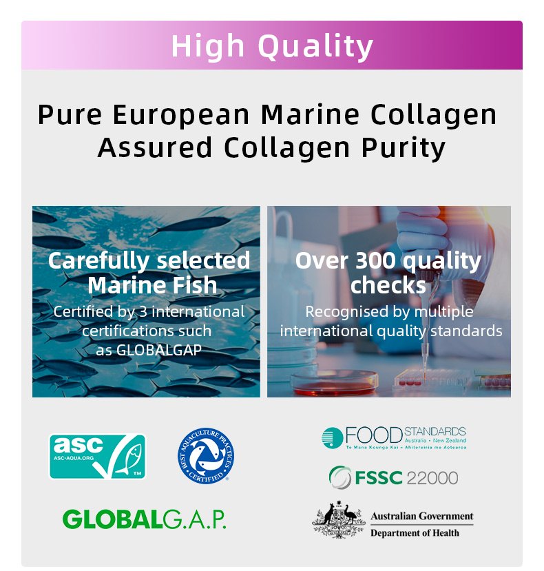 Marine collagen supports skin structure and moisture retention, helping maintain elasticity, smoothness, and a youthful appearance